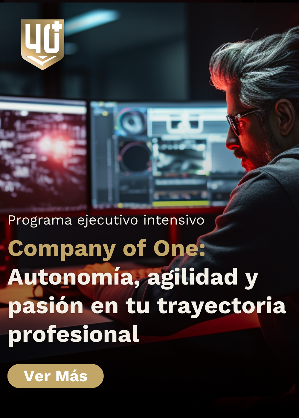 Es un programa intensivo de 4 meses en el que trabajamos con profesionales 40+ para que construyan su propia Company of One y moneticen su experiencia corporativa en solo 120 días, aplicando la metodología de 40+ League probada en más de 200 profesionales 40+.